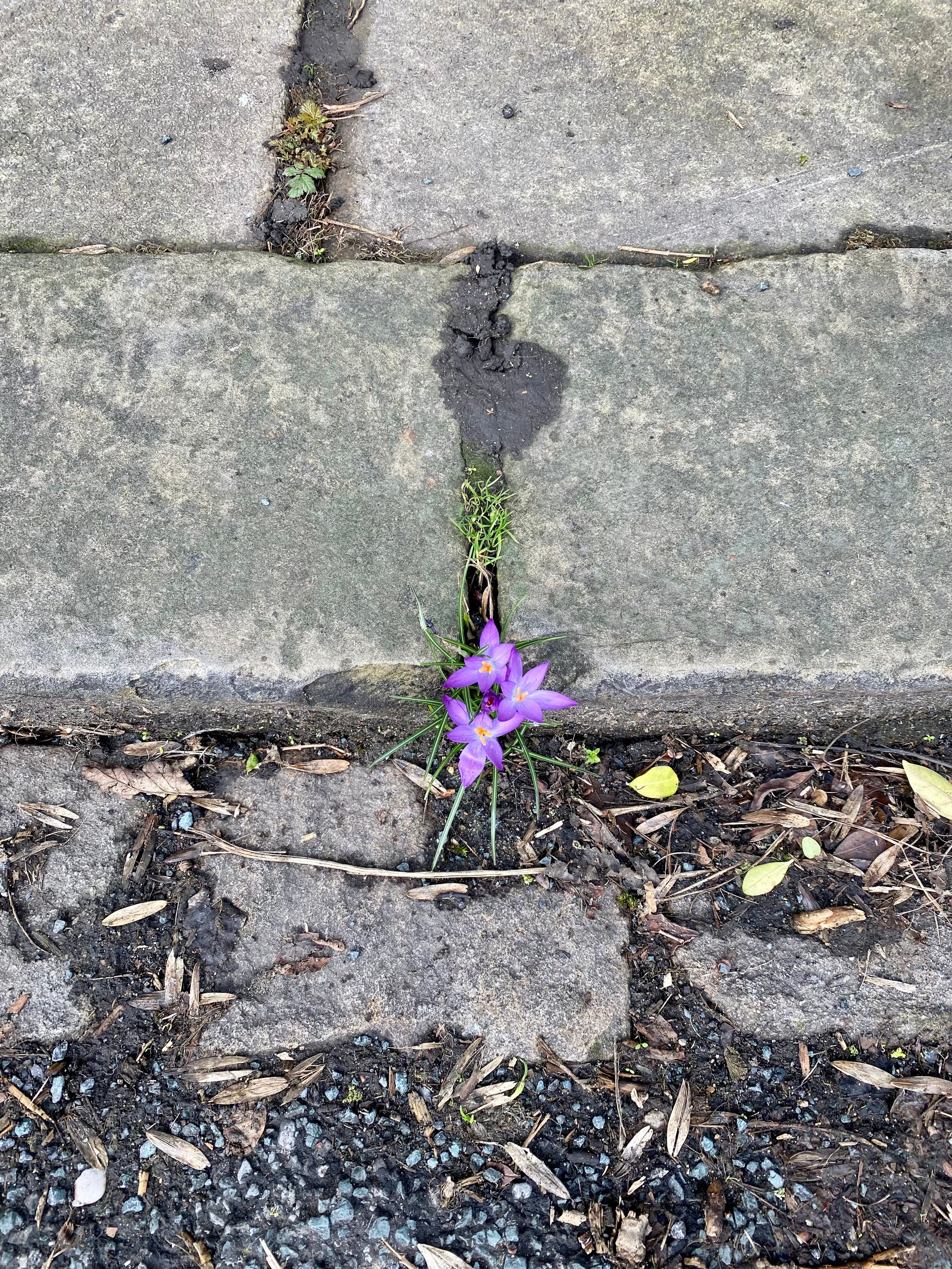 Signs of spring are everywhere suddenly after a heavy, wet winter. Allotment visits have been much reduced, I garden there on clay soil that has been waterlogged and unworkable. I left the perennial plants as habitat over the winter and so that the self seeders can do their work. Lighter days, almost a week without rain, and my self-employment, has allowed the odd extended lunch break at the plot. I’ve been pruning my apple trees, cutting back the herb bed, looking at the little weld, woad and chamomile volunteers emerging in the dye bed. In the back yard at home I cut back ferns finding their new croziers ready to unfurl.